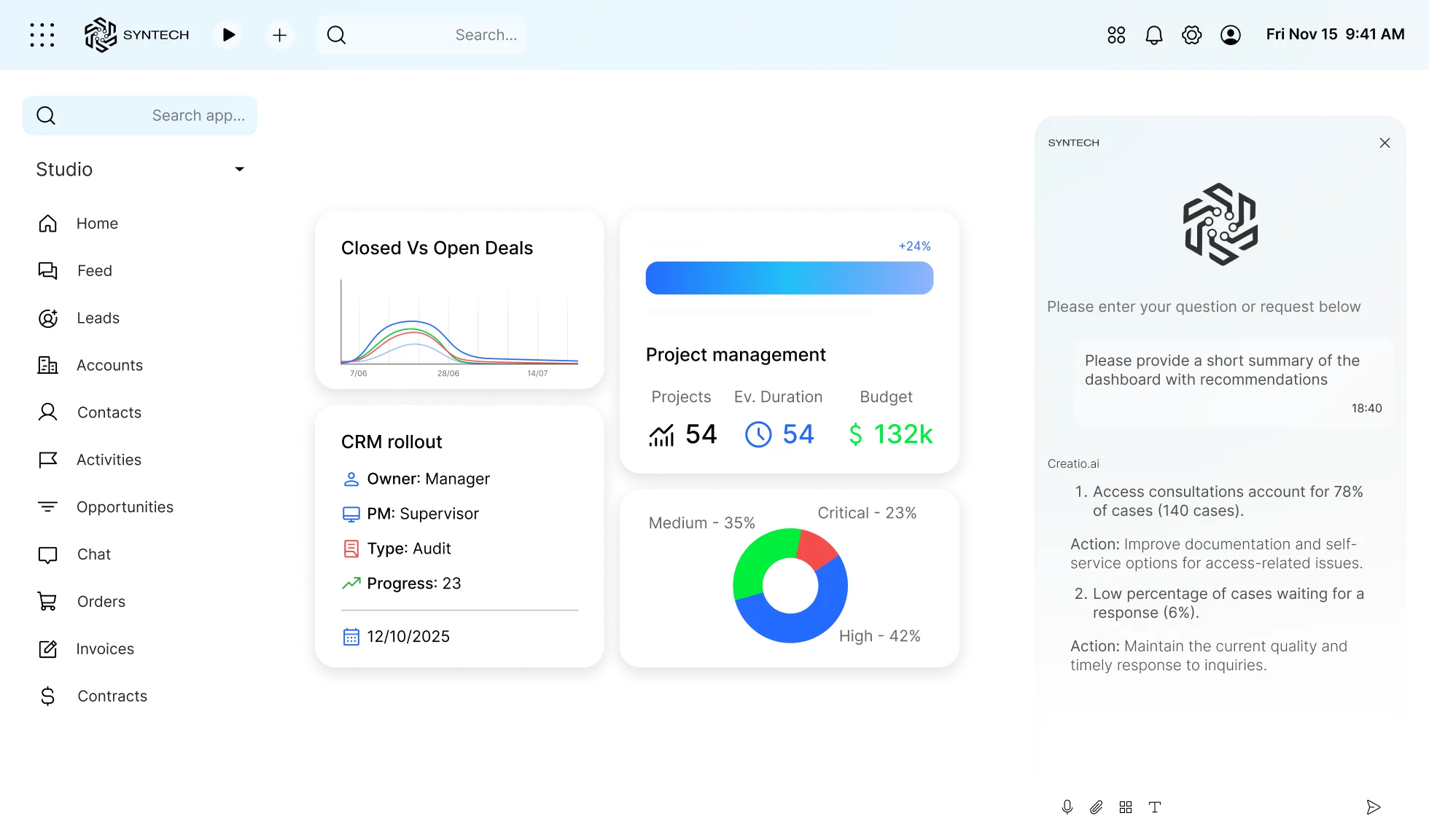 Business automation with Creatio: AI, CRM, production, finance, operations.